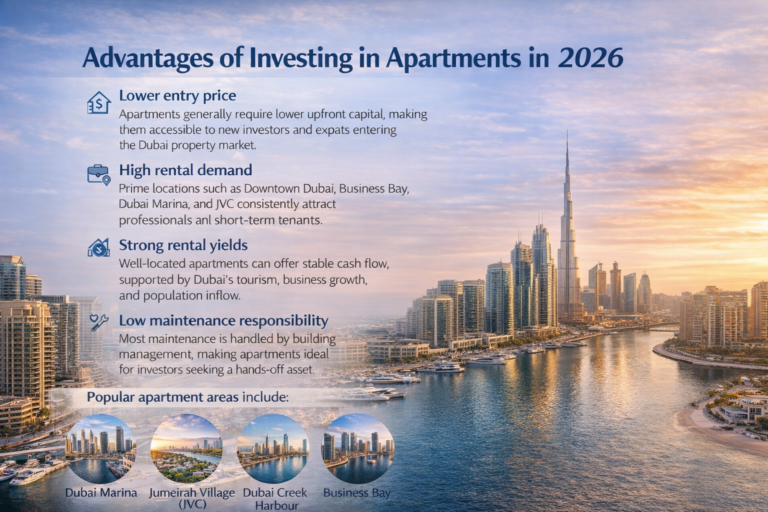 Both apartments and villas play distinct roles in Dubai’s property ecosystem. Understanding their strengths can help investors choose the right asset for 2026.